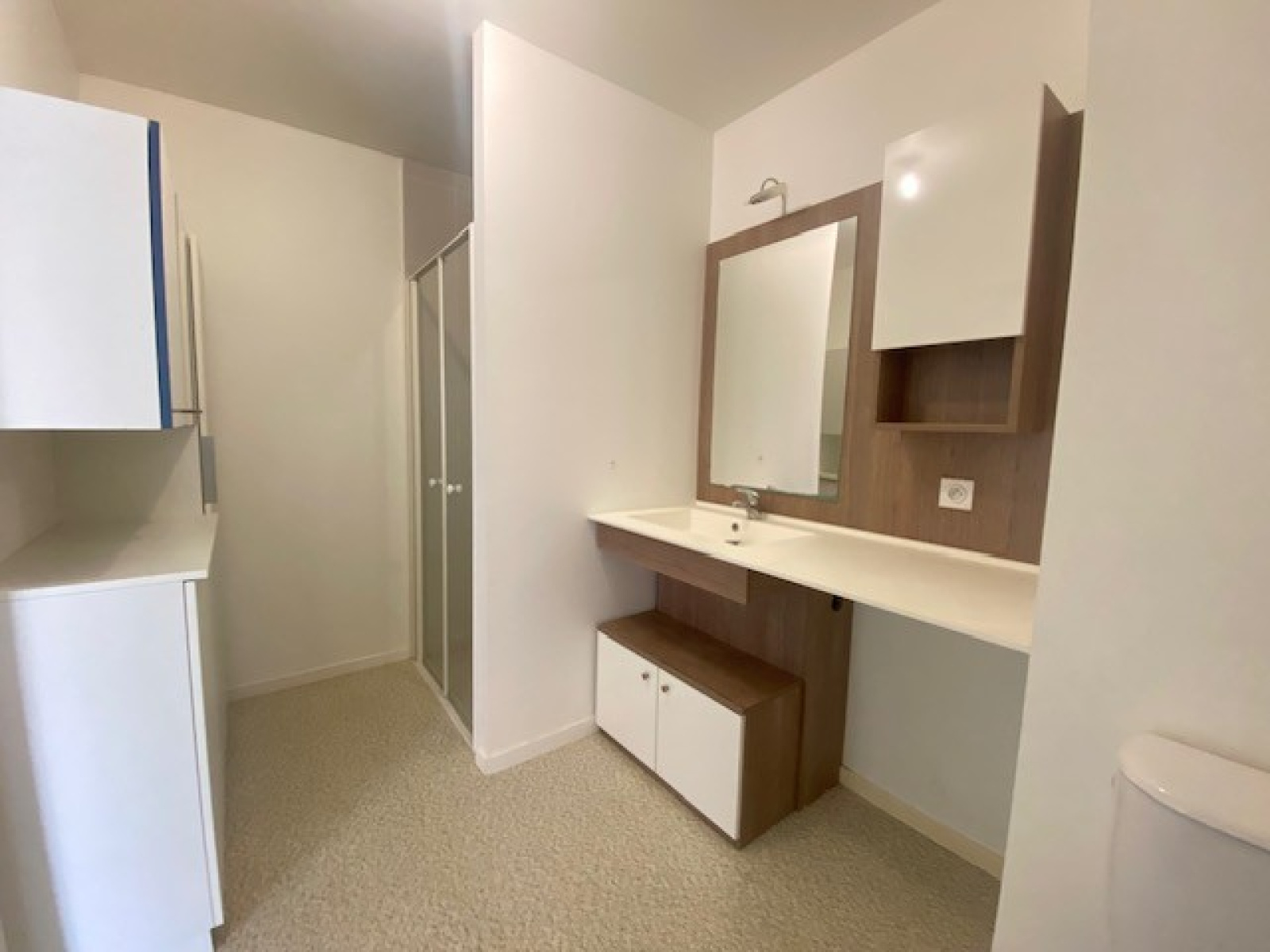 Appartement 2 pièces de 43 m² au dernier étage avec ascenseur, il est composé : d'une entrée avec placard de rangement, séjour avec rangement et coin cuisine aménagée et équipée donnant sur un balcon exposé SUD-EST, une chambre avec placard et une salle d'eau.