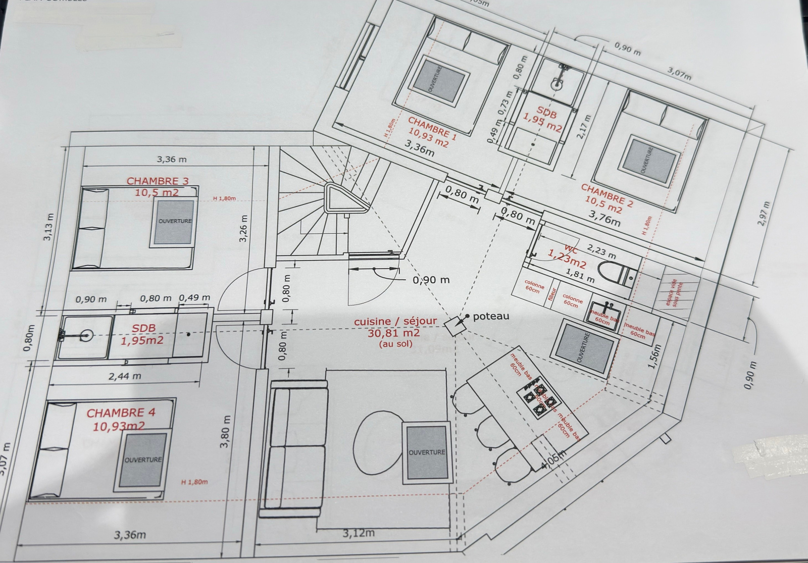 Composé d'un salon , séjour avec coin cuisine , un toilette , 4 chambres et 2 salles d'eau