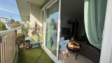 Cet appartement est composé d 'une entrée , un rangement , un salon donnant sur le balcon , un séjour , une cuisine aménagée et équipée , une salle d 'eau avec toilette et deux chambres dont une donnent sur le balcon.