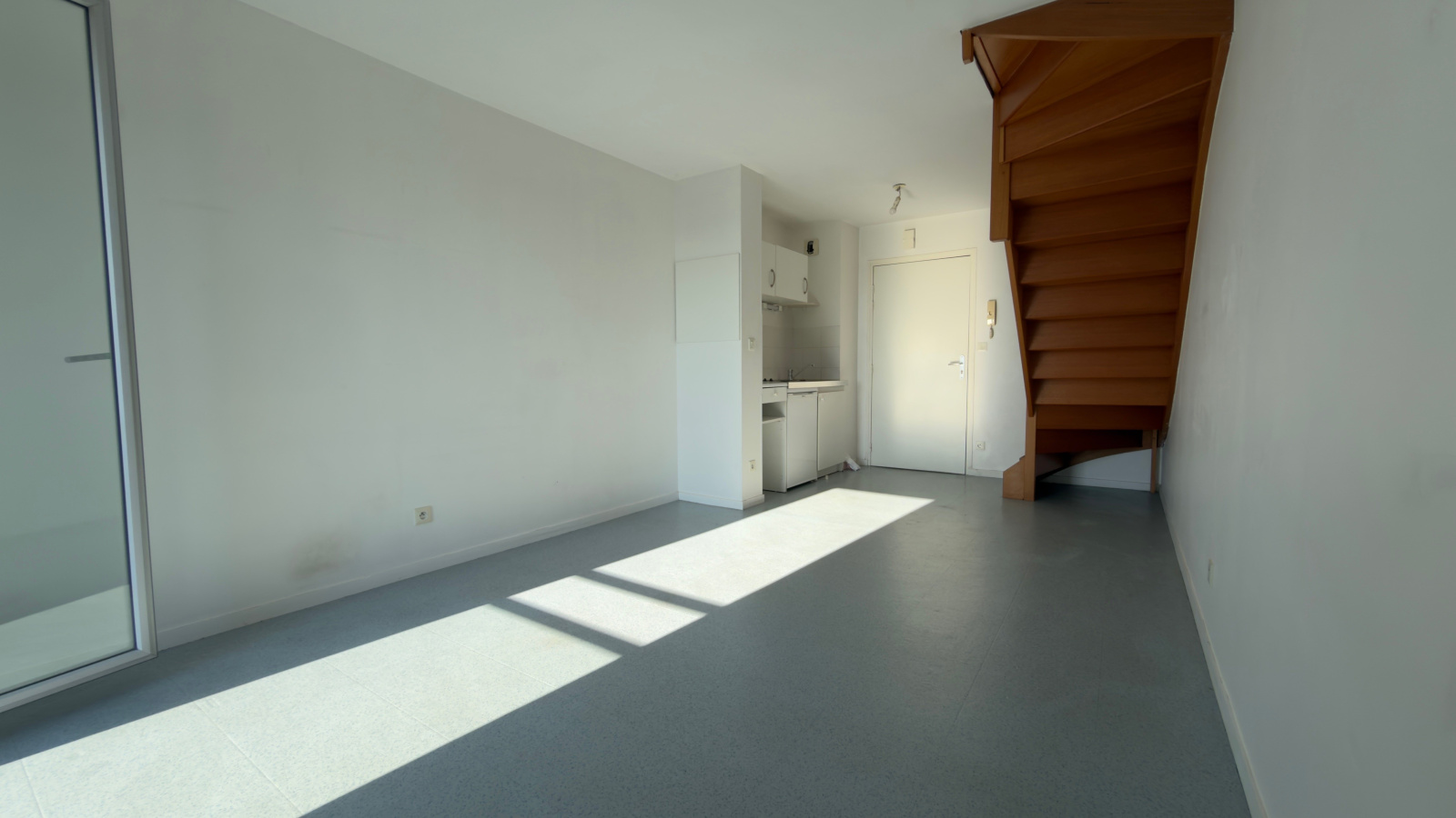 Appartement duplex situé au 2ème étage composé : d'un séjour avec coin cuisine équipée , une chambre, salle d'eau avec douche, wc.