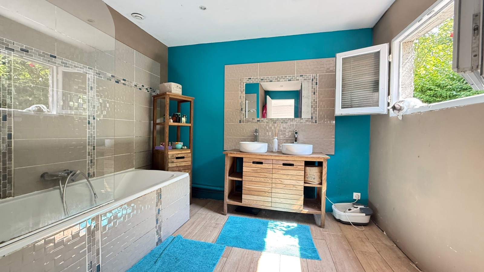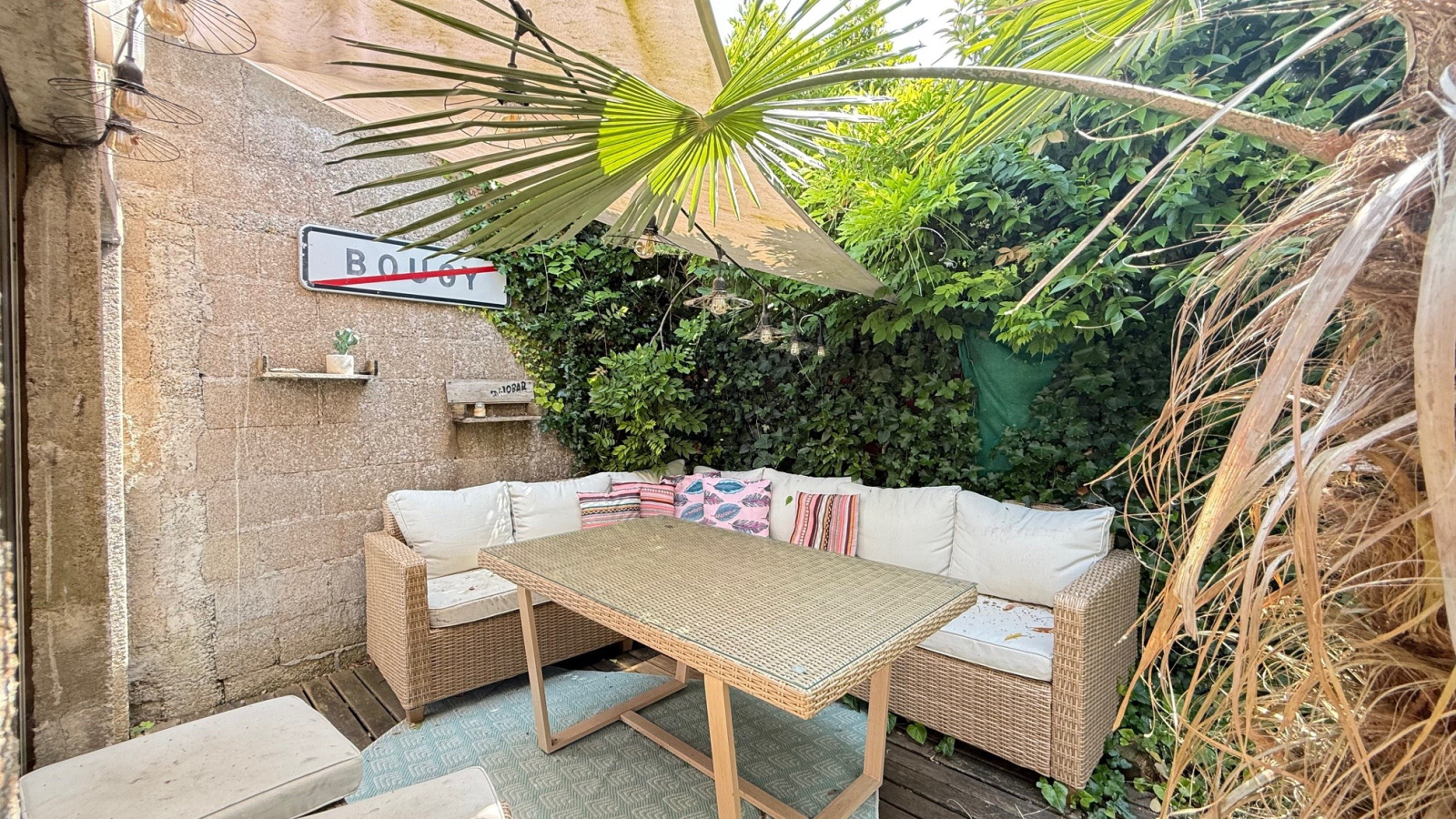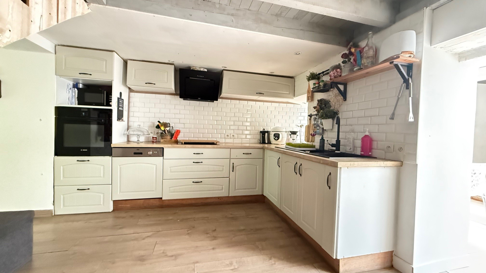 Maison composée d une entrée , un salon , une cuisine aménagée et équipée , un séjour , une salle de bains et un toilette