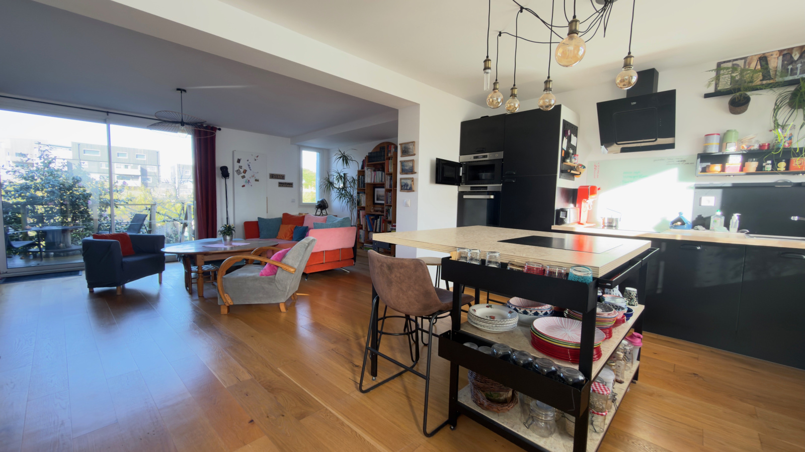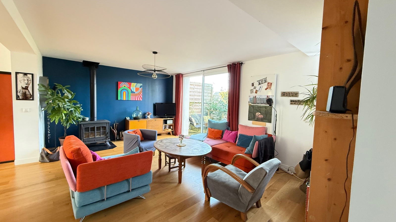 Maison renovée avec gout composée d 'une entrée , un salon séjour donnant sur la terrasse et le jardin , une cuiisne ouverte aménagée et équipée , une chambre , une salle d' eau et un toilette